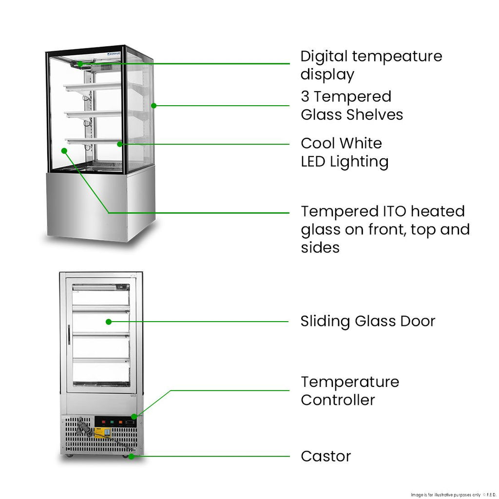 Bonvue refrigerated display cabinet is a product of strong practicality and superior quality, meticulously crafted and designed for the display of pastries, drinks, cakes, fruits, and dairy products. Bonvue stands as one of the leading brands in the multi-functional kitchen utensils and display stand sector. This refrigerated display unit, with its solid construction, is a practical choice for any cake shop or café.